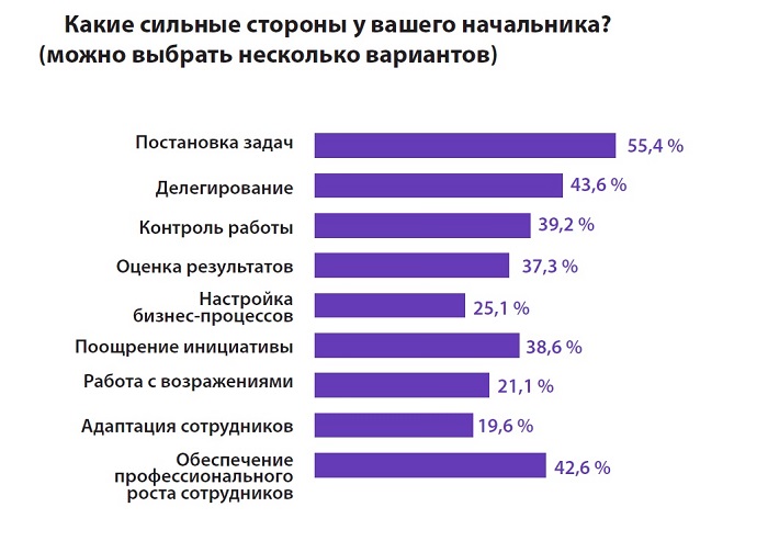 Большинство сотрудников считают своих начальников хорошими руководителями.